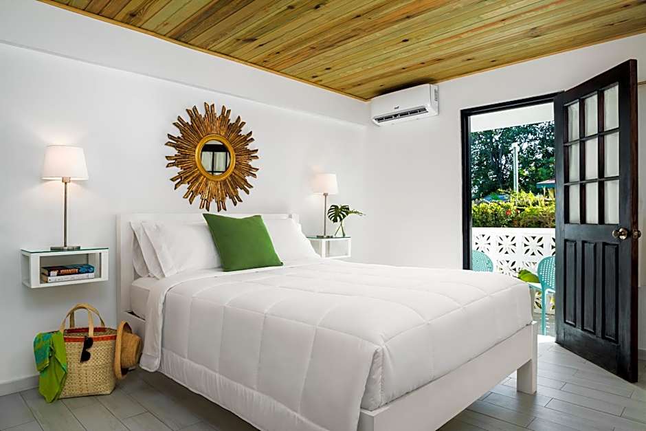 Located on the garden side of the property across the road from the beach. This room features air-conditioning, mini-refrigerator and private balcony. Bathroom with walk-in glass block shower. Approximately 3 minutes' walk to the beach. Free WiFi no TV.